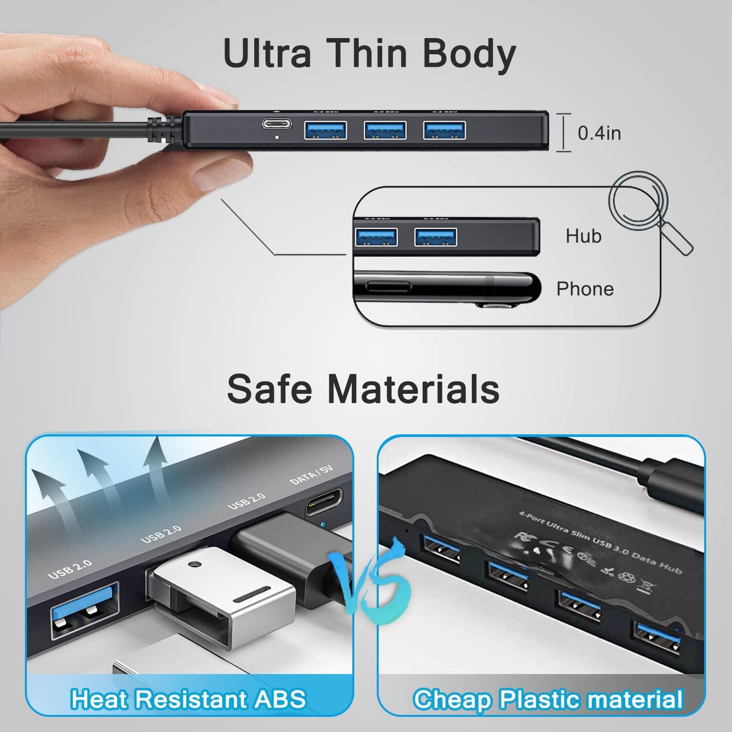【Safer Technical Design】: This USB Extender for Laptop Each port has built-in overcurrent protection. This will protect the connected devices from damage caused by short circuits. Stable ABS outer material has the effect of rapid heat dissipation, preventing overheating and scalding during operation.