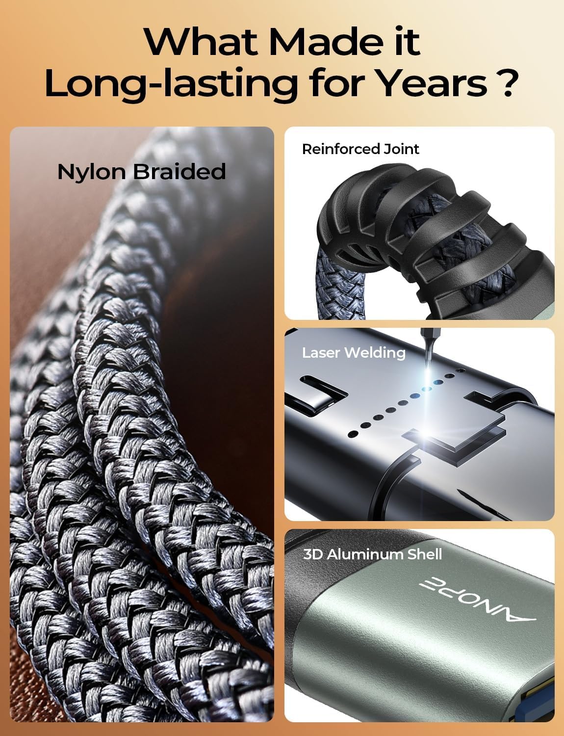 REINFORCED SR CABLE JOINT:AINOPE USB 3.0 extension cable with test of 20,000+ bend, the special SR design makes the cable joints more sturdy. The flexible and wear-resistant armor nylon braided material offers stronger protection. The Included sticky buckles helps to shorten the length and keeps the USB 3.0 extension cable in an organized manner, no tangling worries and effectively prolong the service life.