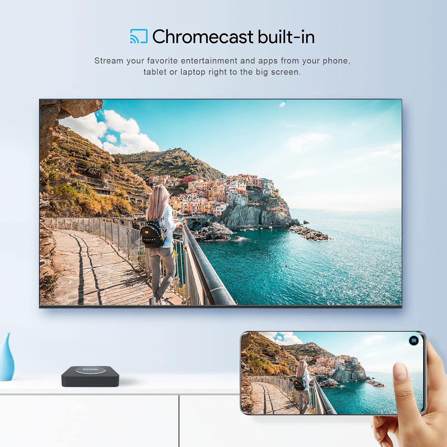 Lots of Extras: MECOOL TV Box 4K is packed with features you will love, supports the latest 4K120 10bit AV1 decoding; BT 5.0, which allows you to connect Mobile phones, PC, speakers or other Bluetooth devices more easily; Use Google Assistant anytime, anywhere to quickly get the answers you want; Chromecast Built-in.