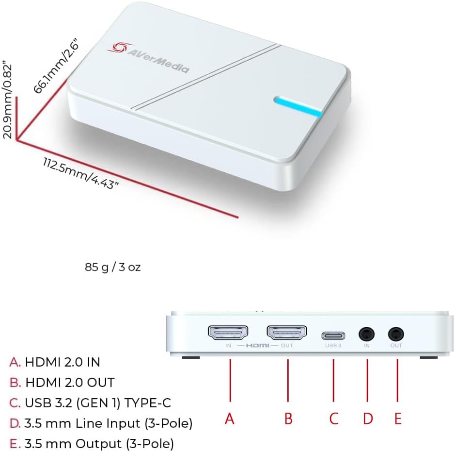 AVerMedia HDMI Capture Card- Gaming, Video Streaming, 4K Capture Card for PS5, Xbox Series X/S, Xbox One, PS4, Switch, Windows 11 / Mac Os12, HDR & VRR Support – GC551G2 Live Gamer Extreme 3 White