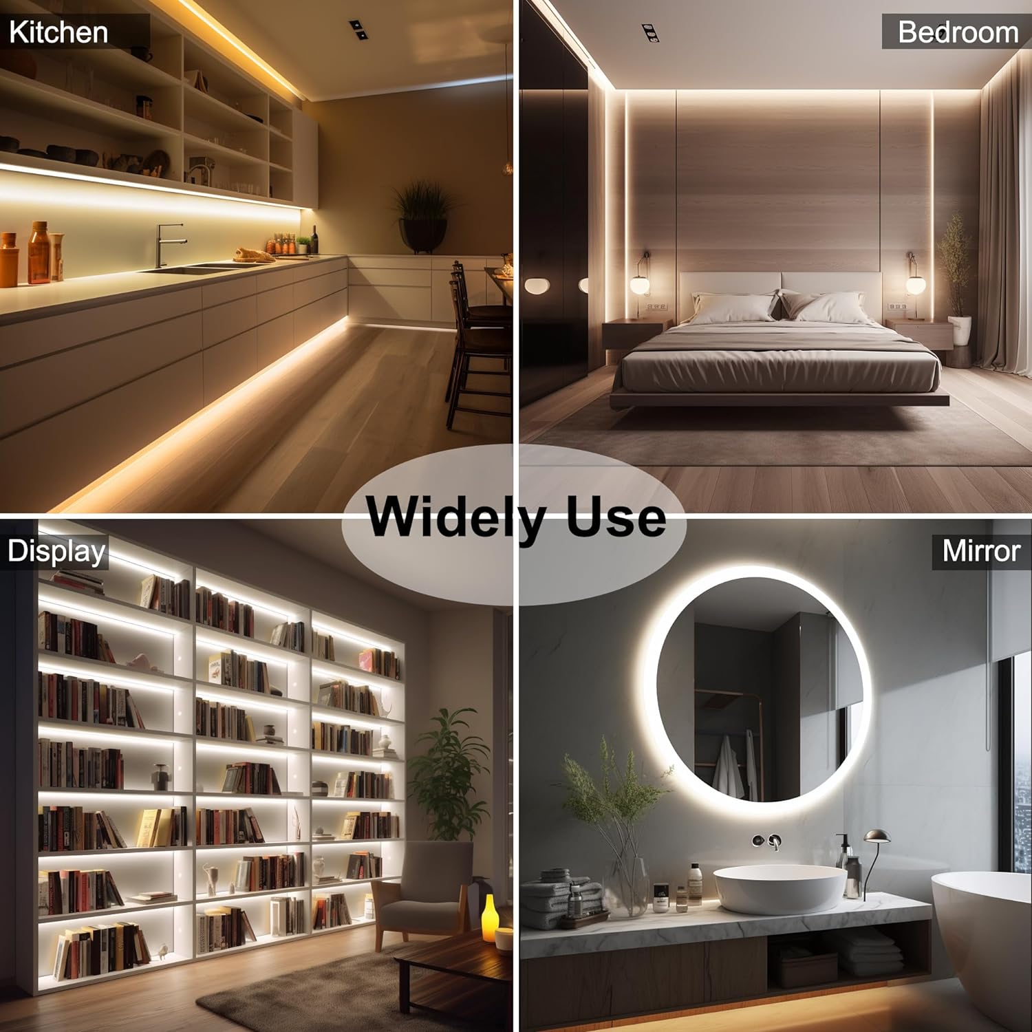 【Dimmable COB LED Lights】8 levels of brightness allows you to safely adjust your 24V COB LED strip light for various occasions. Simply use the controller to dim or brighten your CCT COB LED lights to the desired level.