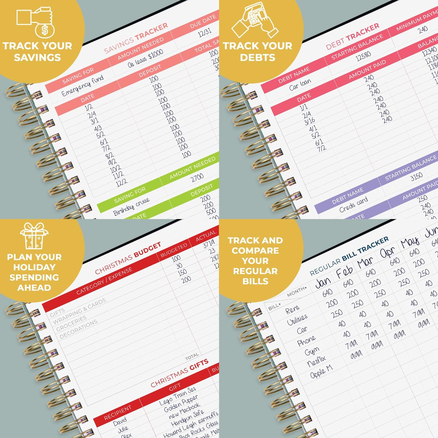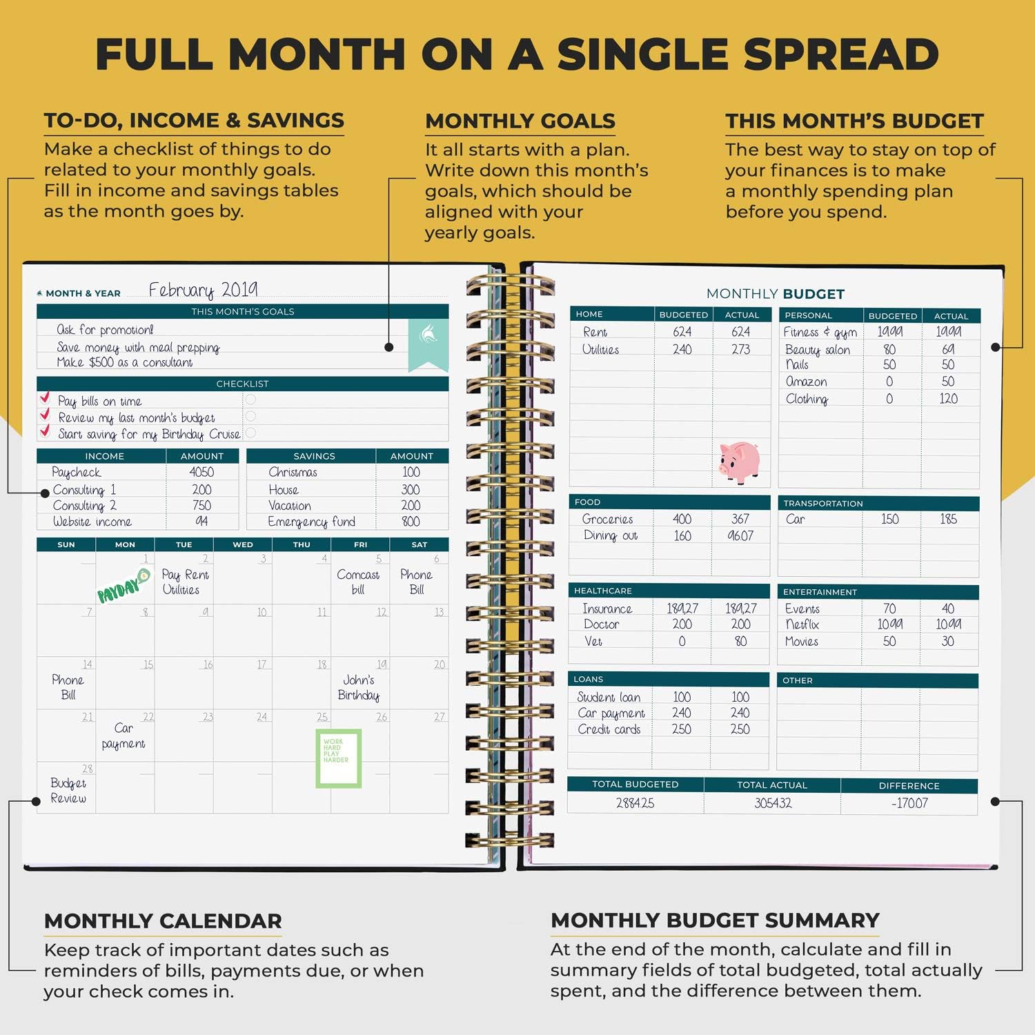 SET & ACHIEVE YOUR FINANCIAL GOALS STRATEGICALLY: This financial planner organizer budget book helps you set big money goals, brainstorm your strategy to achieve them, and break these big goals into manageable action steps to work on every month.