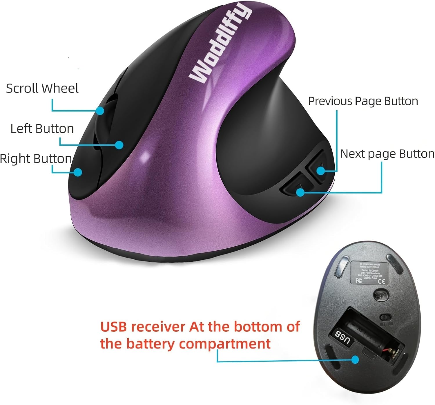 Vertical Mouse Wireless: USB receiver at the bottom of the vertical mouse.Easy to use