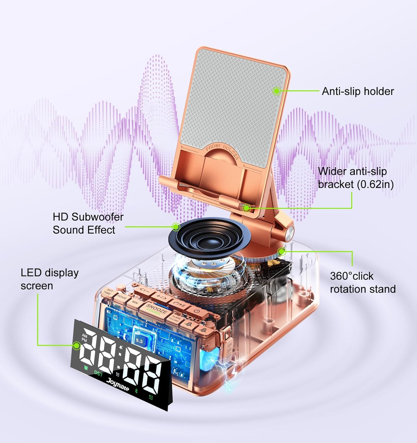 Bluetooth 5.3 and HD Stereo Subwoofer Speaker- We adopted Bluetooth 5.3 technology to ensure a stable and quick connection with your phone which far range up to 32.8ft. Stereo and subwoofer sound perform well with clear highs and bass with less distortion, well immerse yourself in the plot or music. (Please note: it is not a charging stand.)