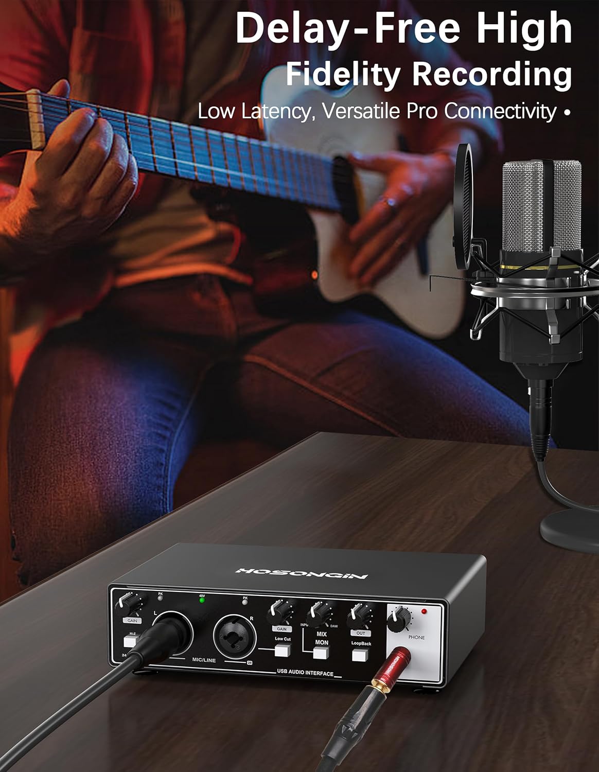 The HOSONGIN Audio Interface supports an impressive resolution of 24-bit and a sample rate of 192kHz! I love how this high-quality sound really captures every detail in my recordings. It’s perfect for both my music projects and podcasting sessions!