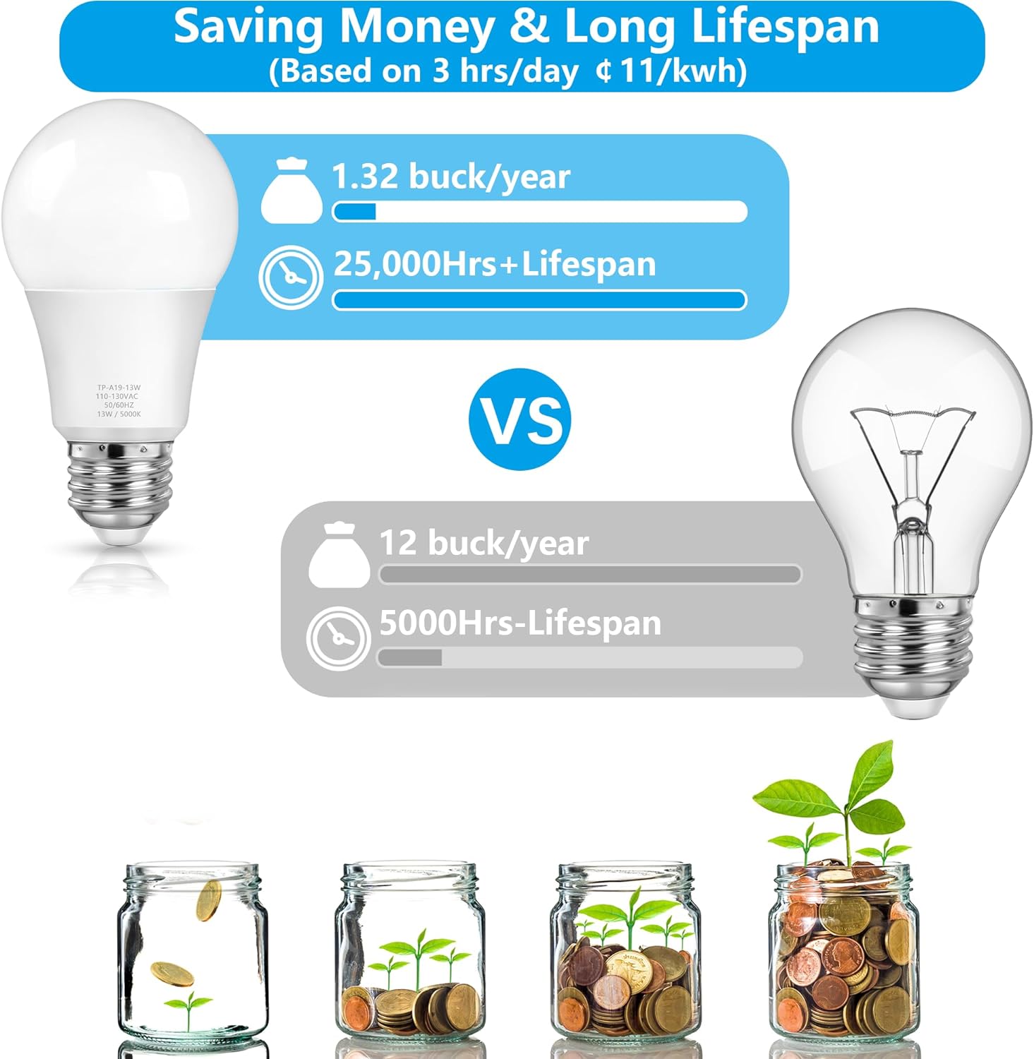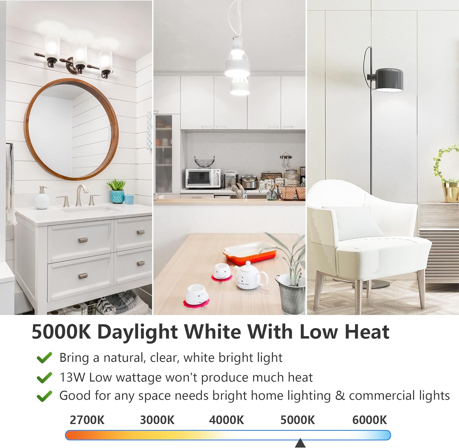 Energy-Efficient: Replaces 100-125W incandescent bulbs with 13W LED technology, largely reducing energy consumption while lowering heat output.