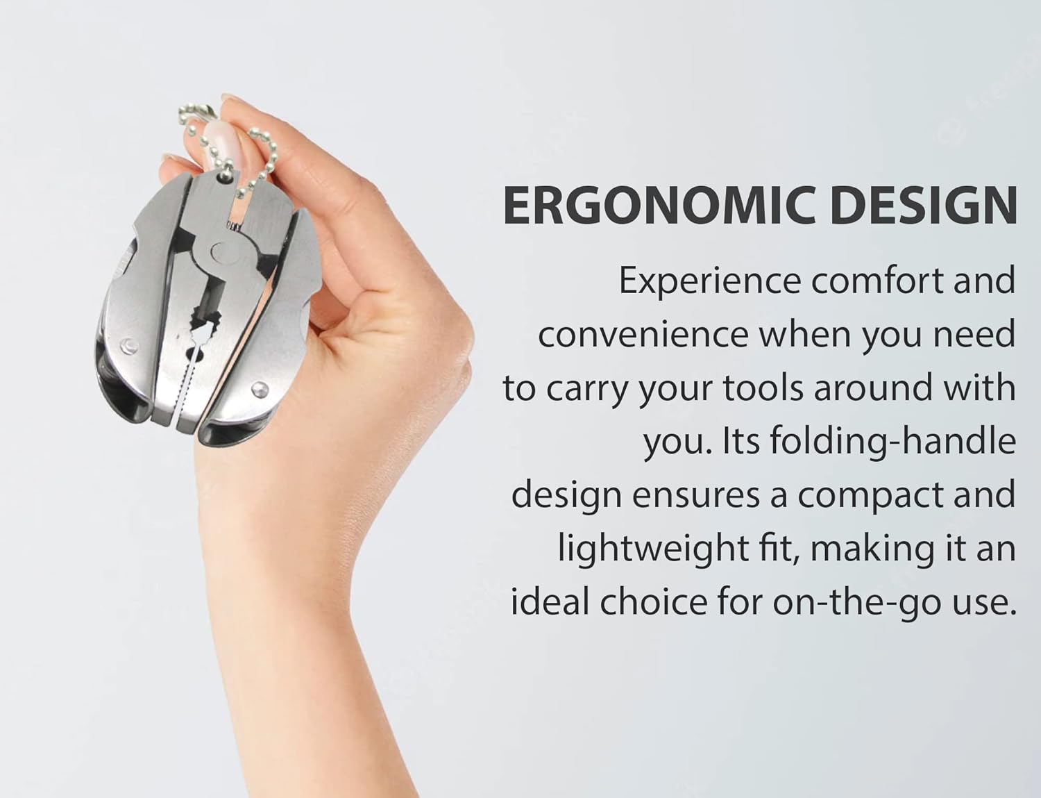 Ergonomic design: Designed with convenience in mind, this mini multitool has an ergonomic design to provide comfortable and effortless use for any task. Whether you need to tighten a few screws, cut a piece of wire, or file something down, this plier keychain has you covered.