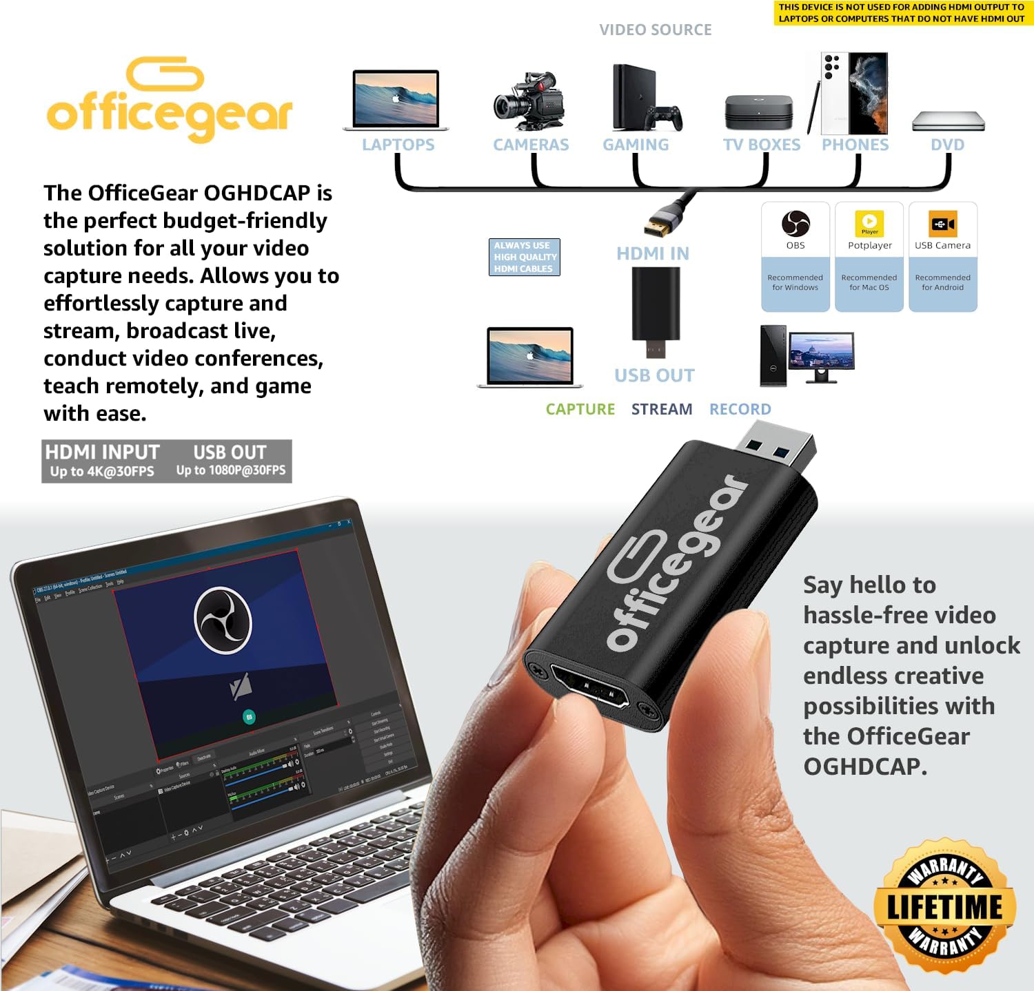 Whether you’re a content creator looking to upgrade your streaming setup, an educator teaching online, or a gamer sharing your gameplay, the OGHDCAP offers reliable performance at an affordable price. Its compact design and plug-and-play functionality make it a convenient addition to any setup, and its compatibility with various devices ensures seamless integration into your workflow. Experience hassle-free video capture and unlock endless creative possibilities with the OfficeGear OGHDCAP.