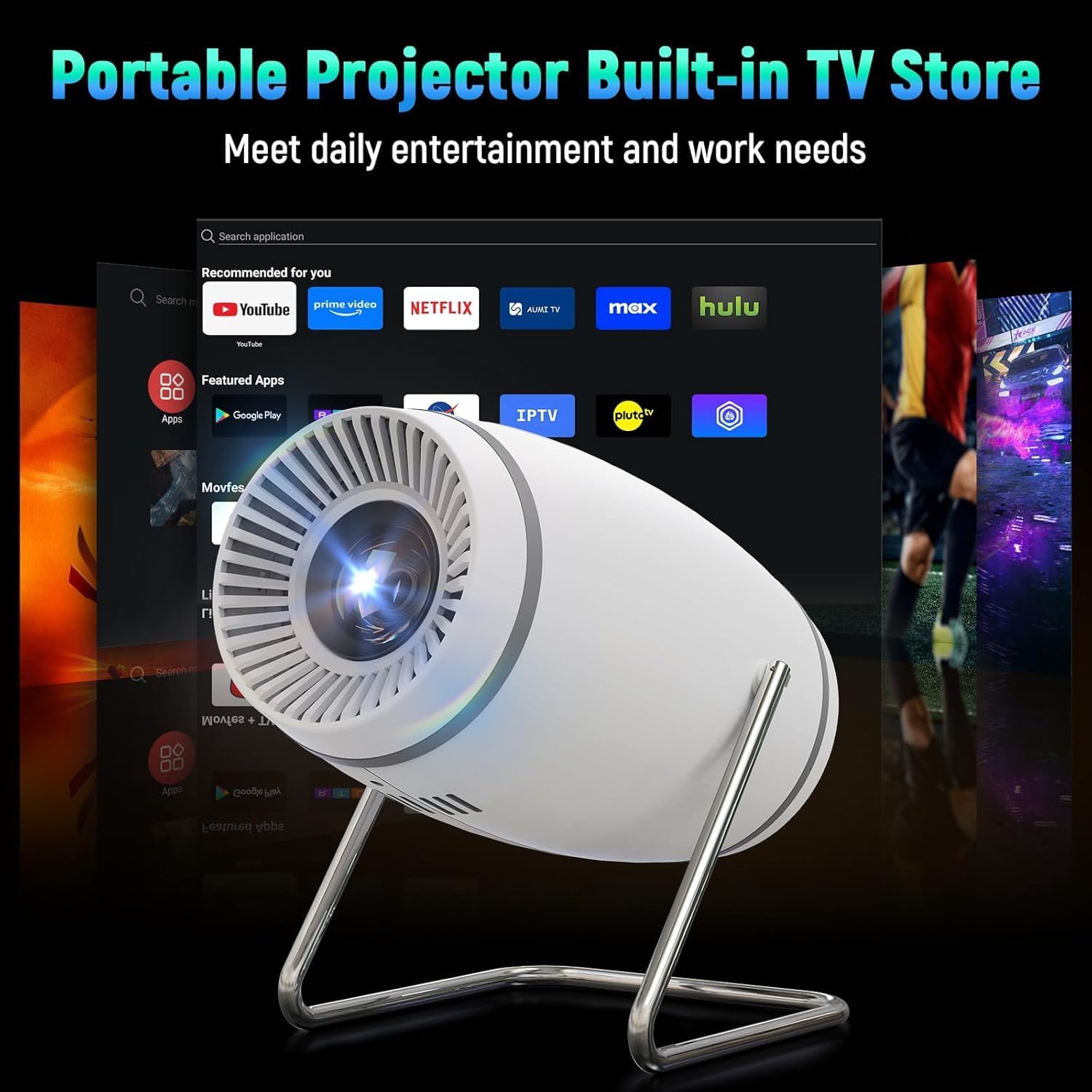 ✅Smart Projectror with Built-in Apps: The projector has a built-in TV Store, making it easy to download your favourite apps, including Netflix, Youtube and Prime Video. Smooth video playback for the ultimate viewing experience.