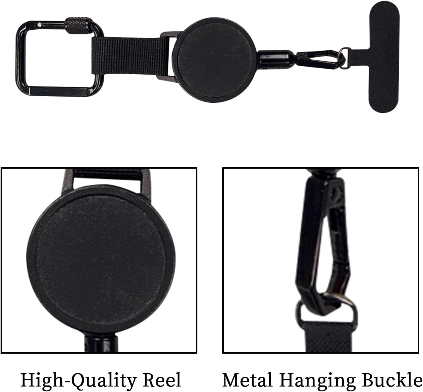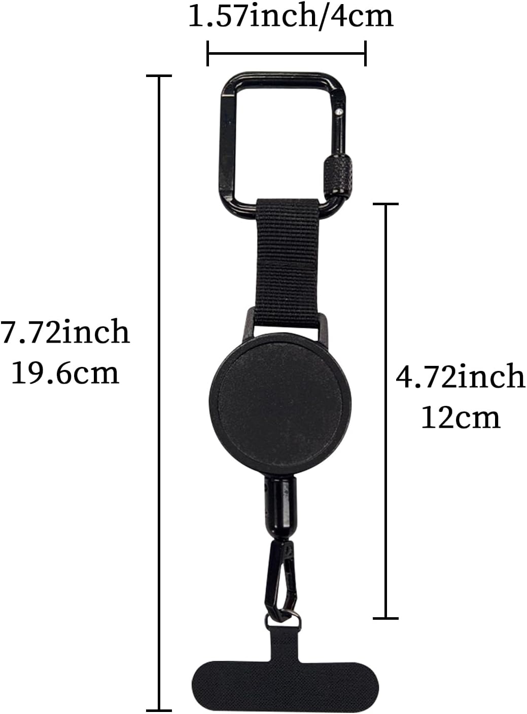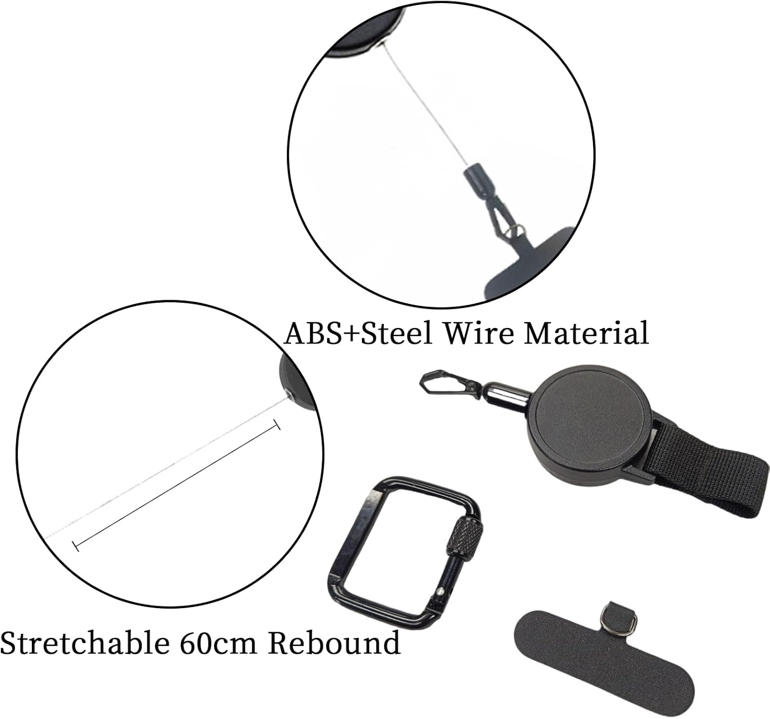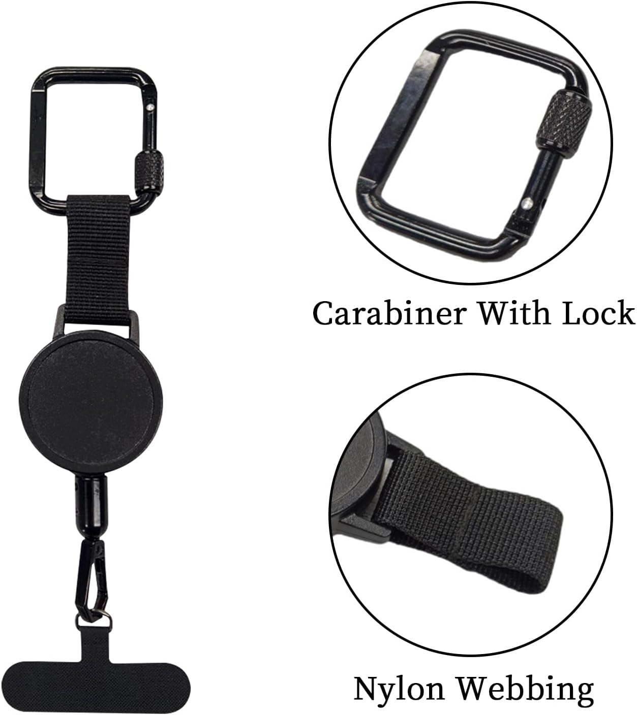 Retractable Anti-Theft Phone Holder Extendable Key Chain Lanyard Holder Phone Strap with Carabiner Keys Phone Accessories for Travel Hiking (Black)