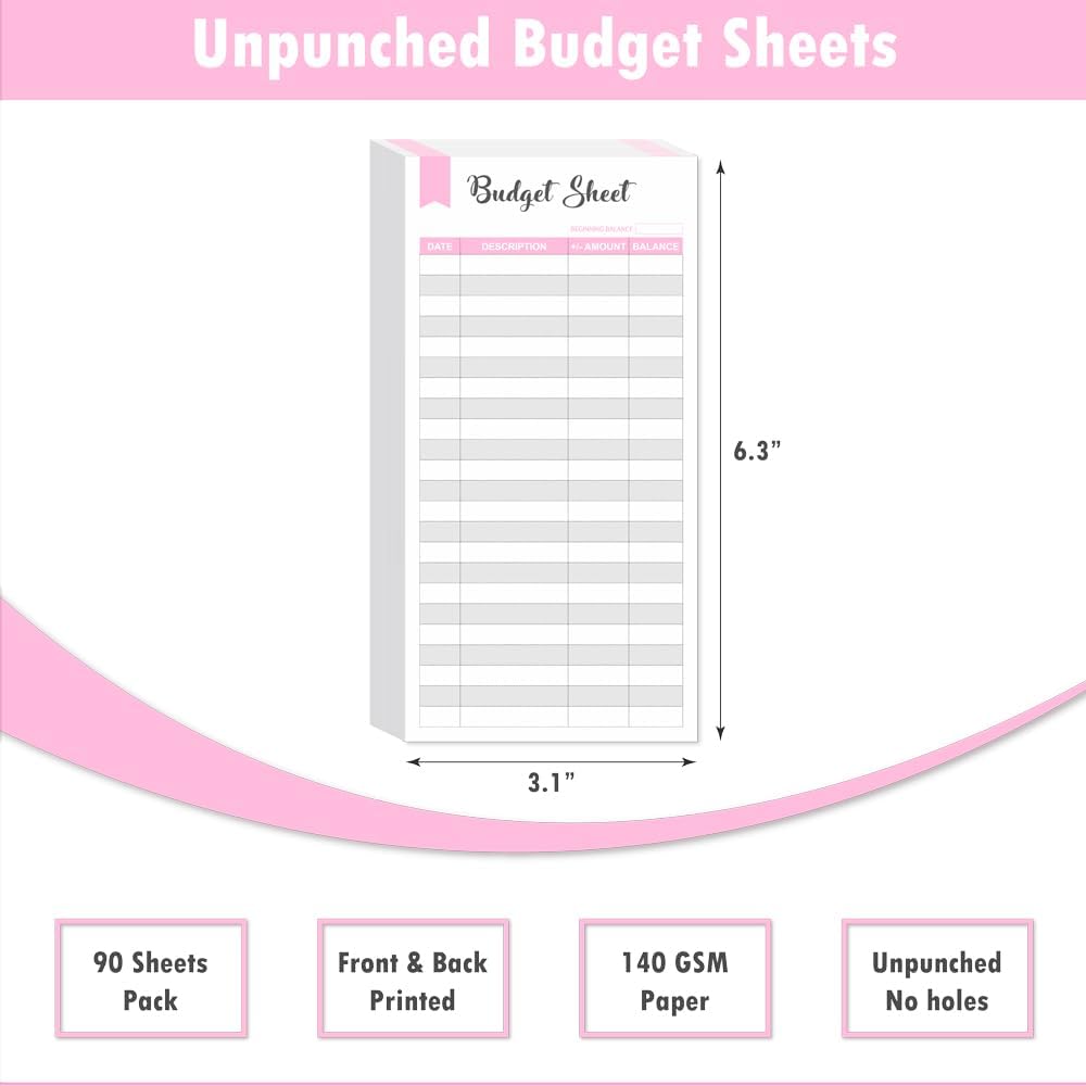 (Set of 90) Expense Tracker for A6 Budget Envelopes, Unpunched Budget Sheets Use with A6 Budget Binder Pockets, 3.1″x6.3″