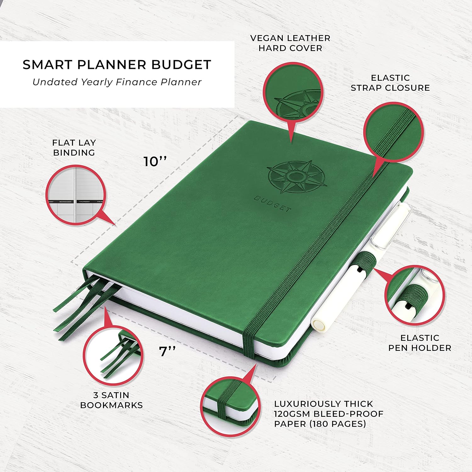 Smart Planner Budget Book – A5 Size 8.6 x 5.7 inches – Undated Budget Planner Organizer with Calendars, Debt Tracker, Expense Sheets, Savings Trackers and More – Inner Pocket for Receipts (Green)
