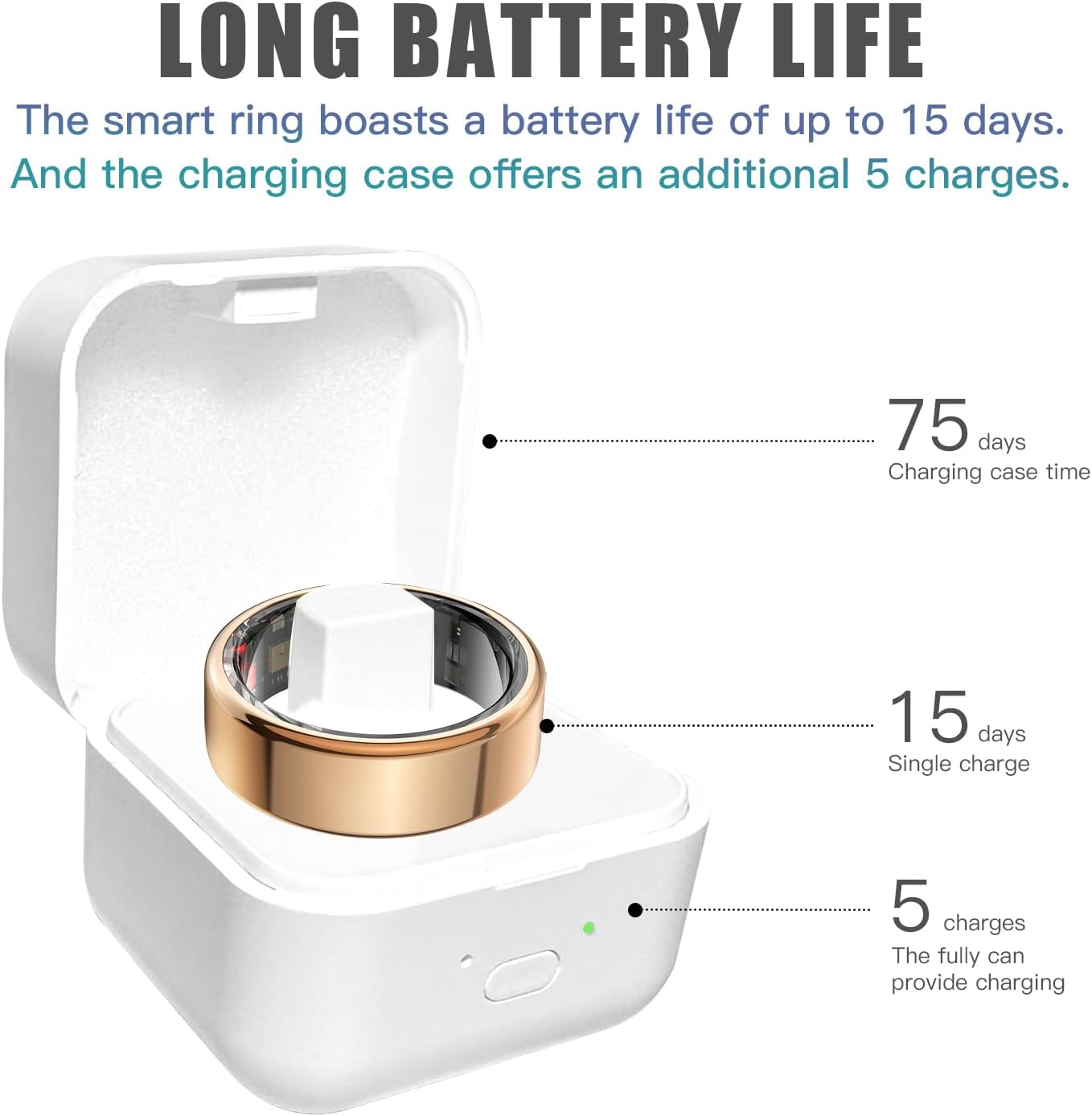 【Long battery life and wide compatibility】: The battery life is up to 15 days, and the charging case can fully charge the smart ring about 5 times. Compatible with smartphones with Android 6.0 / iOS 11.0 or higher, it is a great gift for both men and women
