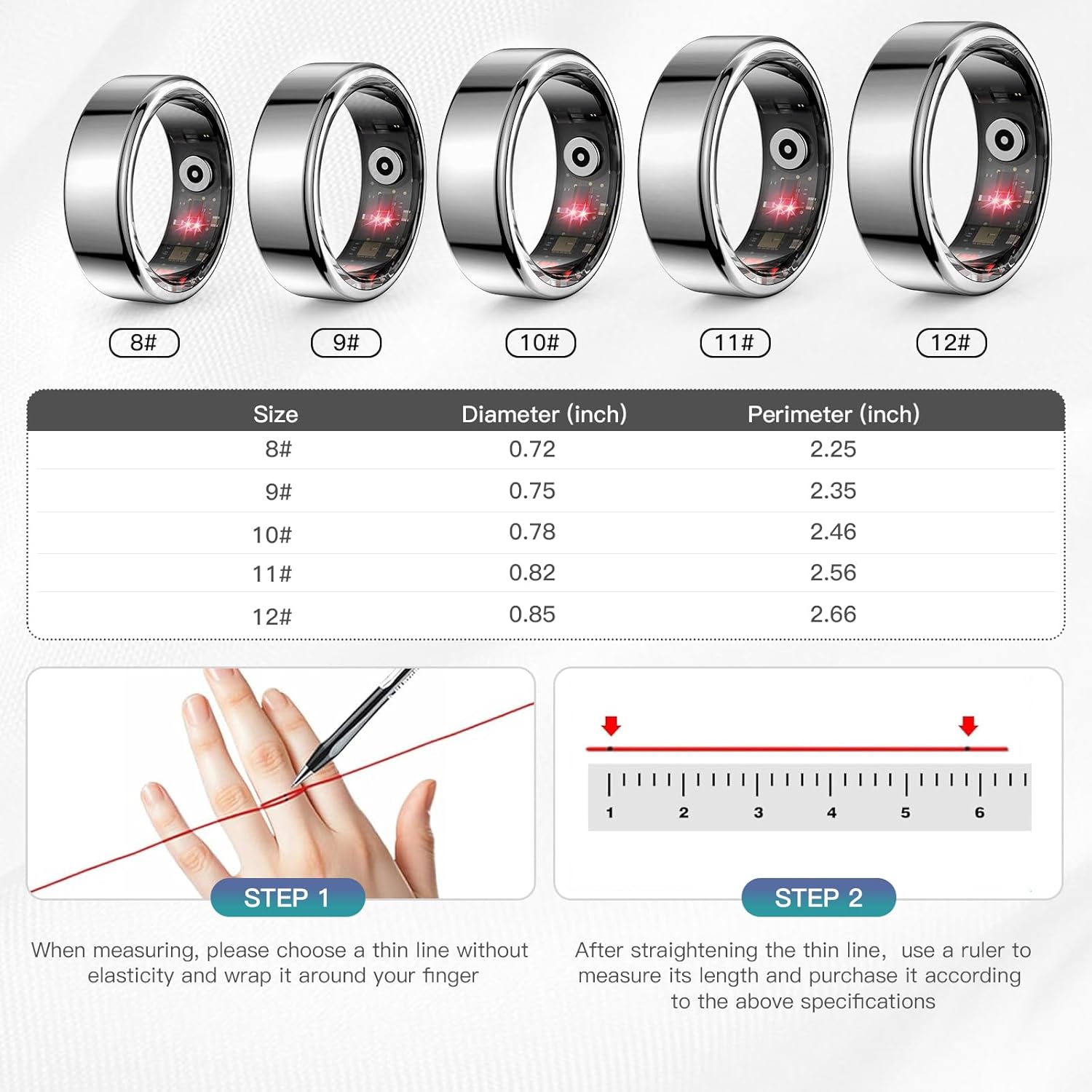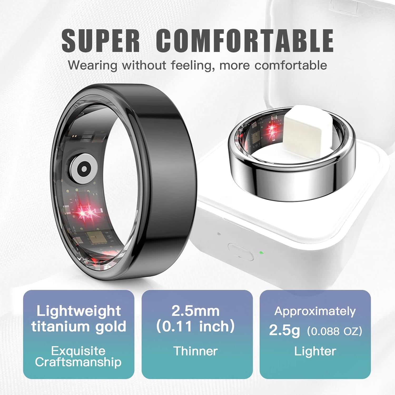 【Upgraded Chip, Precision Sensing】- The smart ring is equipped with precision sensors, including multi-axis acceleration, optical heart rate, optical blood oxygen saturation, and infrared sensors running at the same time. These sensors are comparable to professional-grade equipment, ensuring superior accuracy and performance