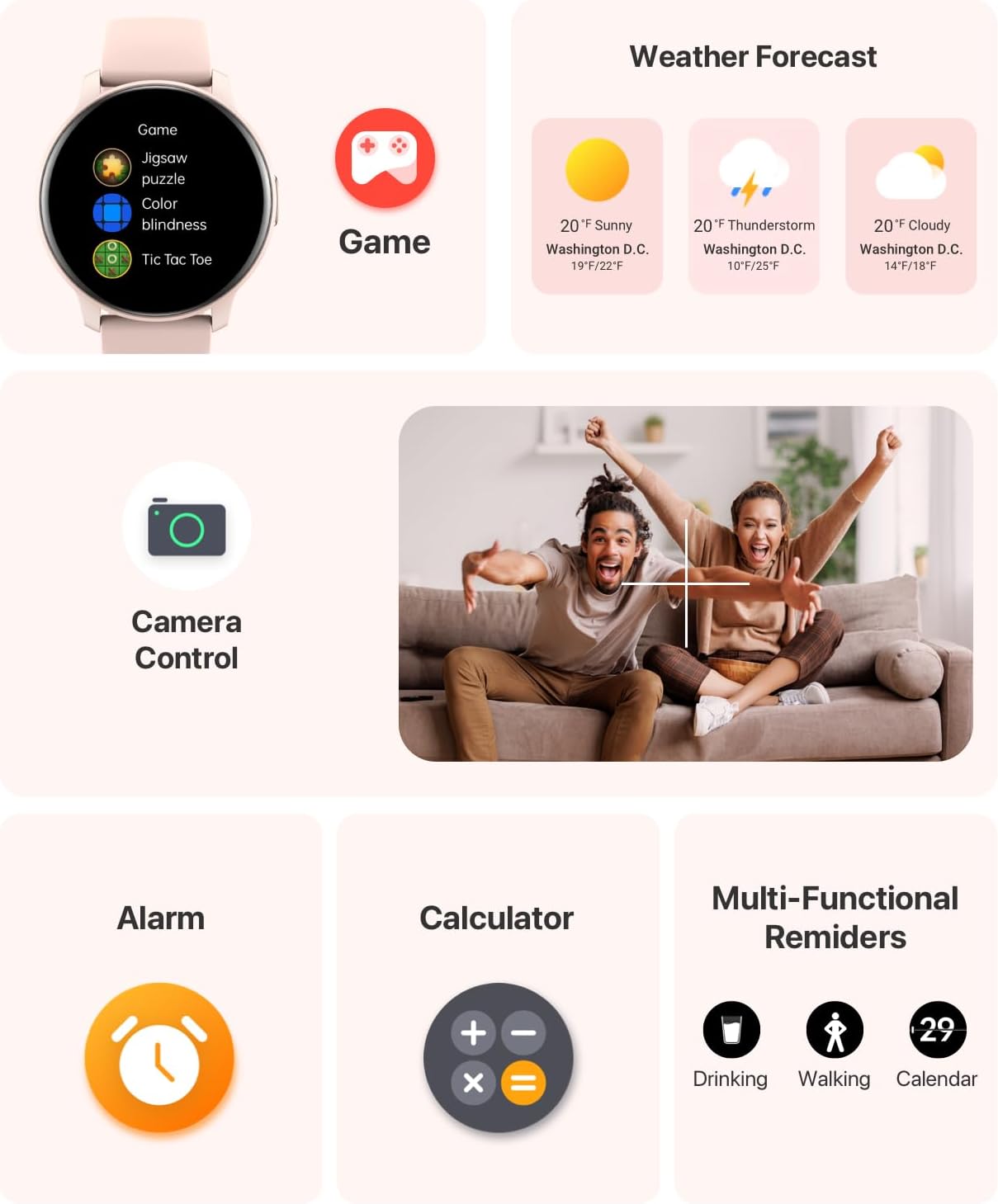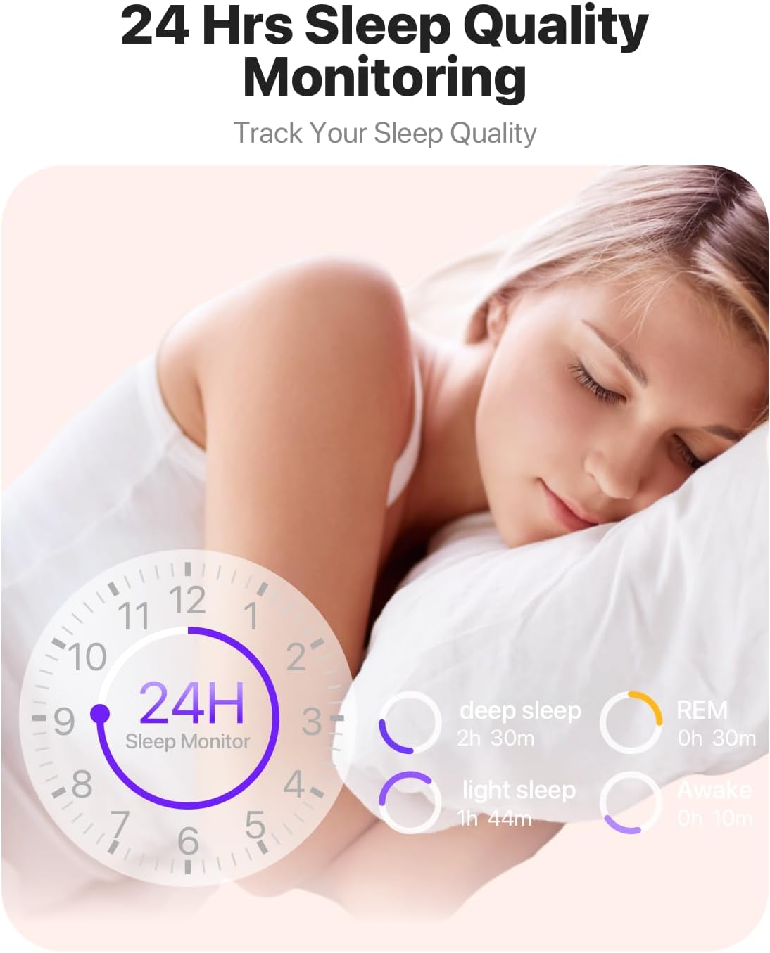 【24 Hour Health Monitoring】: This smart watch is compatible for most iphone and Android phones, and the digital chip inside is scientifically developed using the latest technology. The chip uses advanced sensors to monitor heart rate, blood oxygen and female cycle, and can also perform timely sleep quality tracking at night. All recorded data can be synced to your phone for analysis, providing valuable insights into your health and promoting lifestyle adjustments. (non-medical standard)