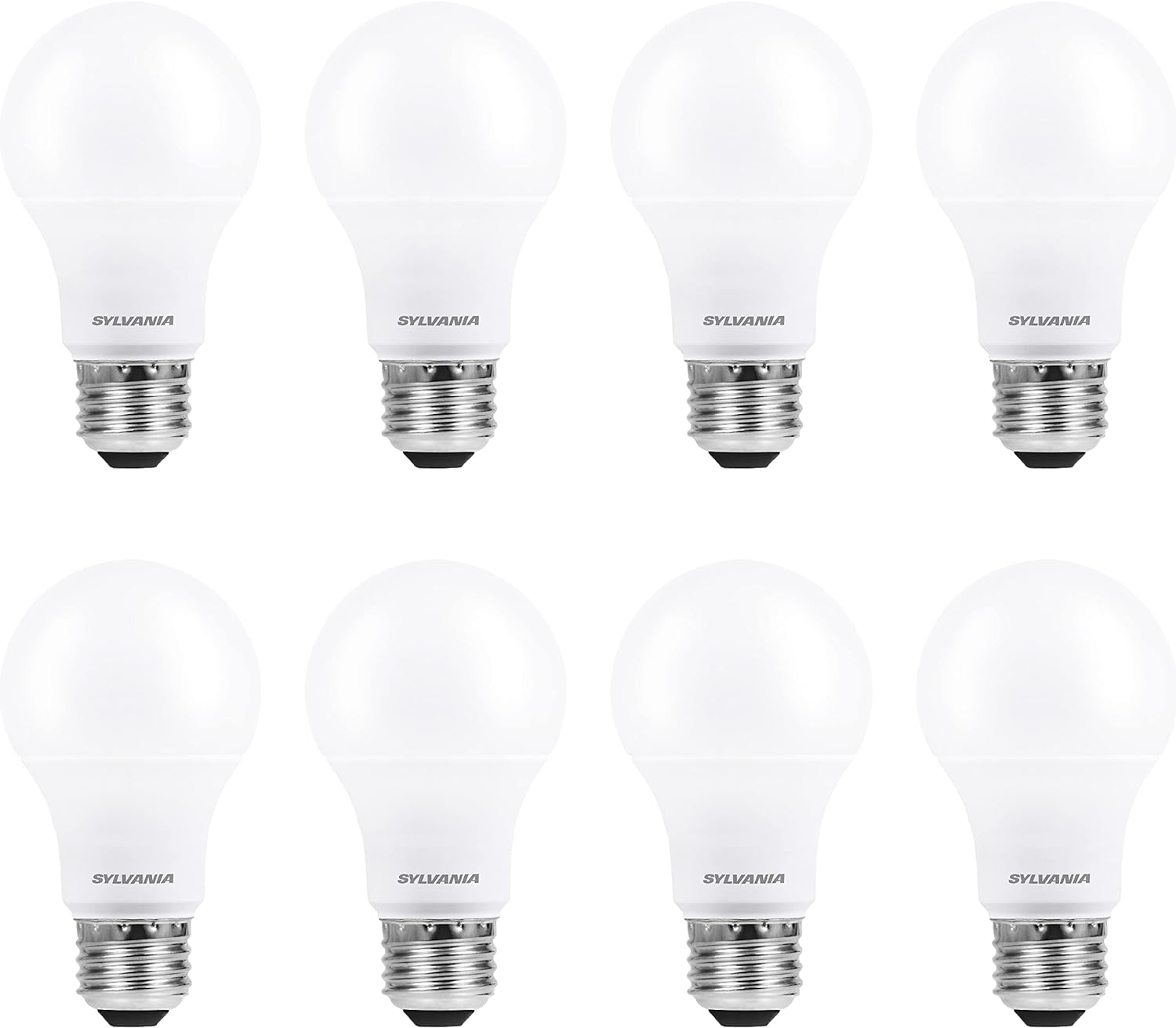 SYLVANIA ECO LED Light Bulb, A19 60W Equivalent, Efficient 9W, 7 Year, 750 Lumens, 2700K, Non-Dimmable, Frosted, Soft White – 8 Count (Pack of 1) (40821)