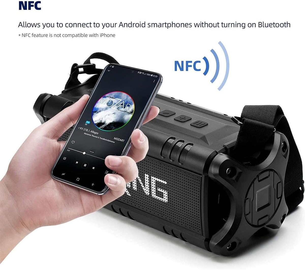 Supported Advanced Bluetooth 5.0/AUX/TF Card & NFC Connection: With V5.0 outdoor bluetooth speaker wireless, you can communicate with the phone assistant and never worry about sudden Bluetooth disconnection while using! Have a wireless connection range of 100ft, creating a fast and stable signal transmission. The portable speaker support 3.5mm AUX and TF-Card. NFC connection allows you to pair your smartphone with the waterproof speaker by simply touching it (NFC Only for Android)