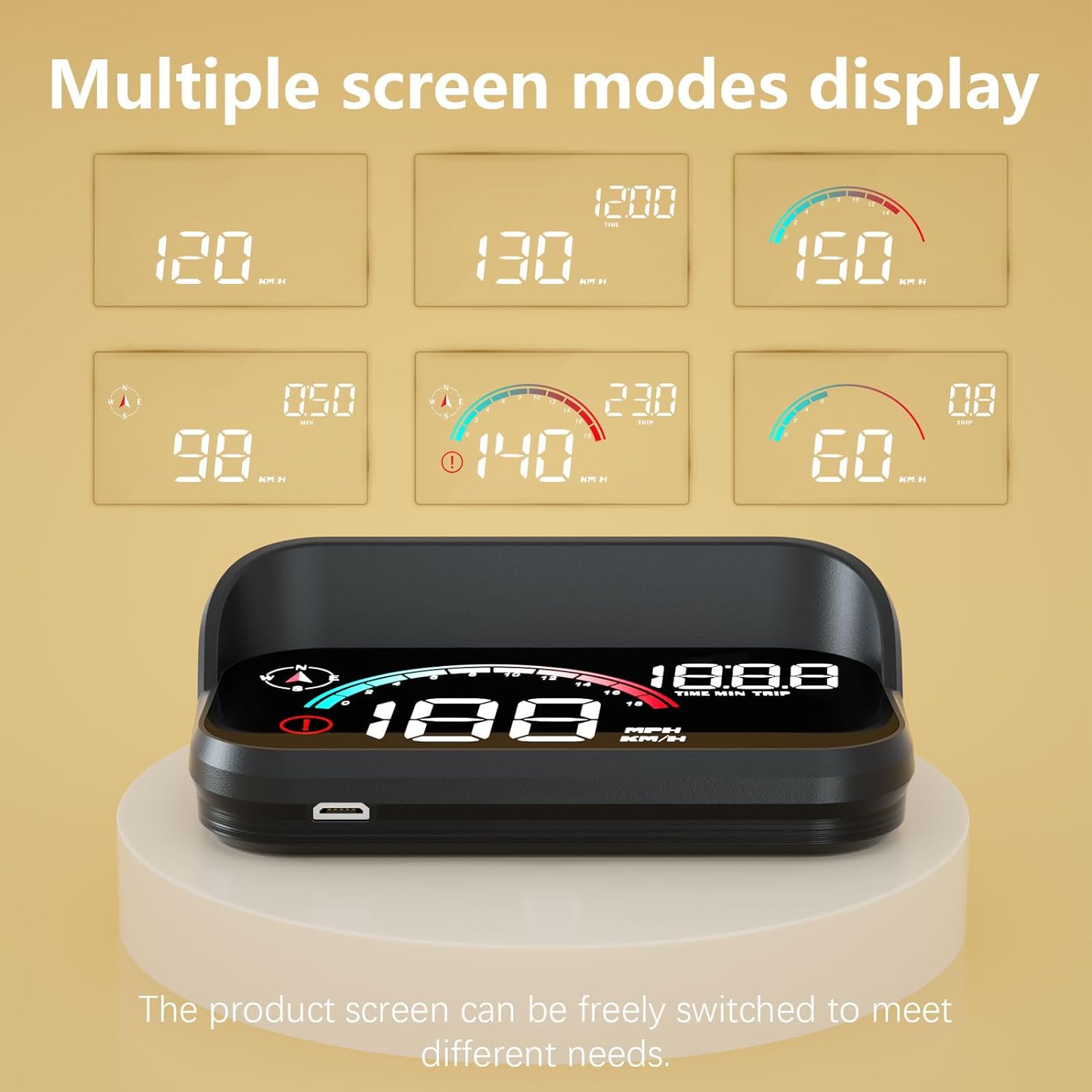 【Main Functions】The M22windshield speedometer projector displays speed, clock, travel time and distance travelled. It also has an over speed alarm function and a GPS compass to show the direction(The compass needs to locate the satellite before it can be used. You can try moving the car to an open road surface.). Speed is available in MPH and KM/H, which can be adjusted in the settings. When there is an over speed, the product will emit a beeping sound to remind the driver, which is like a safety supervisor, always reminding the driver to pay attention to driving safety, placing a beautiful M22 HUD in the car.