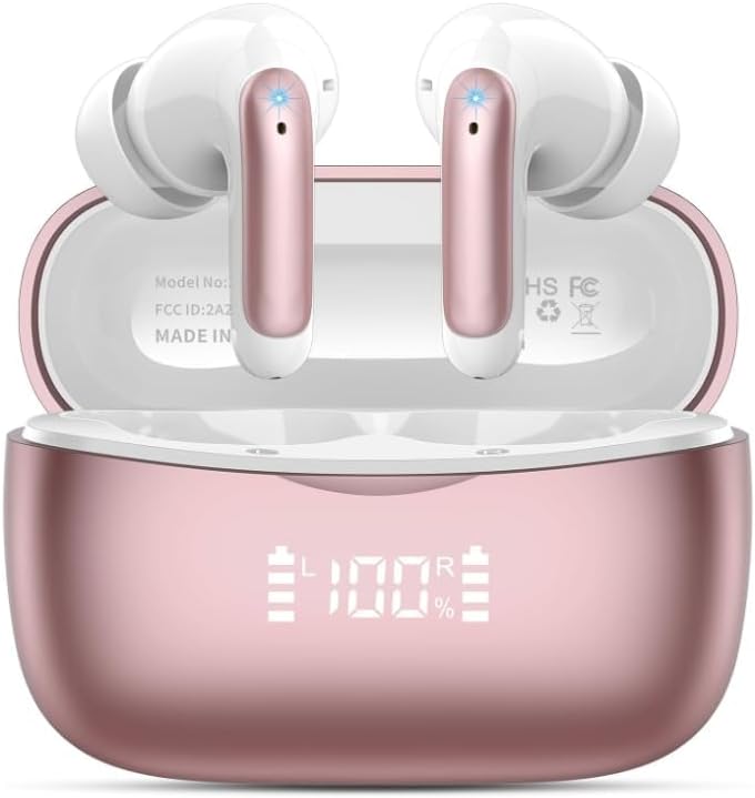 Be the first to review “Wireless Earbuds, Bluetooth 5.4 Headphones In Ear with 4 ENC Noise Cancelling Mic, Ear buds with HiFi Stereo Deep Bass, 38H Playtime, Ultra Light IPX7 Waterproof for Android iOS, USB-C, Rose Gold”